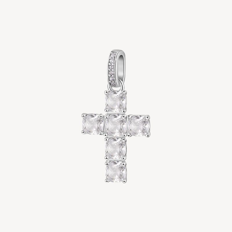 Pendente a forma di croce in argento rodiato 925‰ con cushion cubic zirconia.